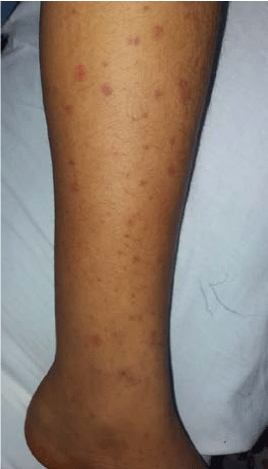 admission she presented with slender purpuric tasks of the lower limbs associated with arthralgia and abdominal pain. Histological study of